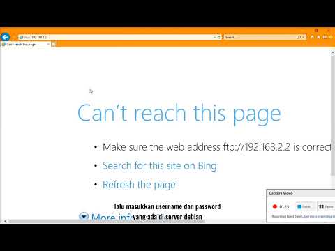 12. Setelah setting IP di PC client, masuk ke chrome dan ketikkan ftp://IP server, lalu masukkan username dan password yang ada di server debian, jika sudah maka berhasil masuk.